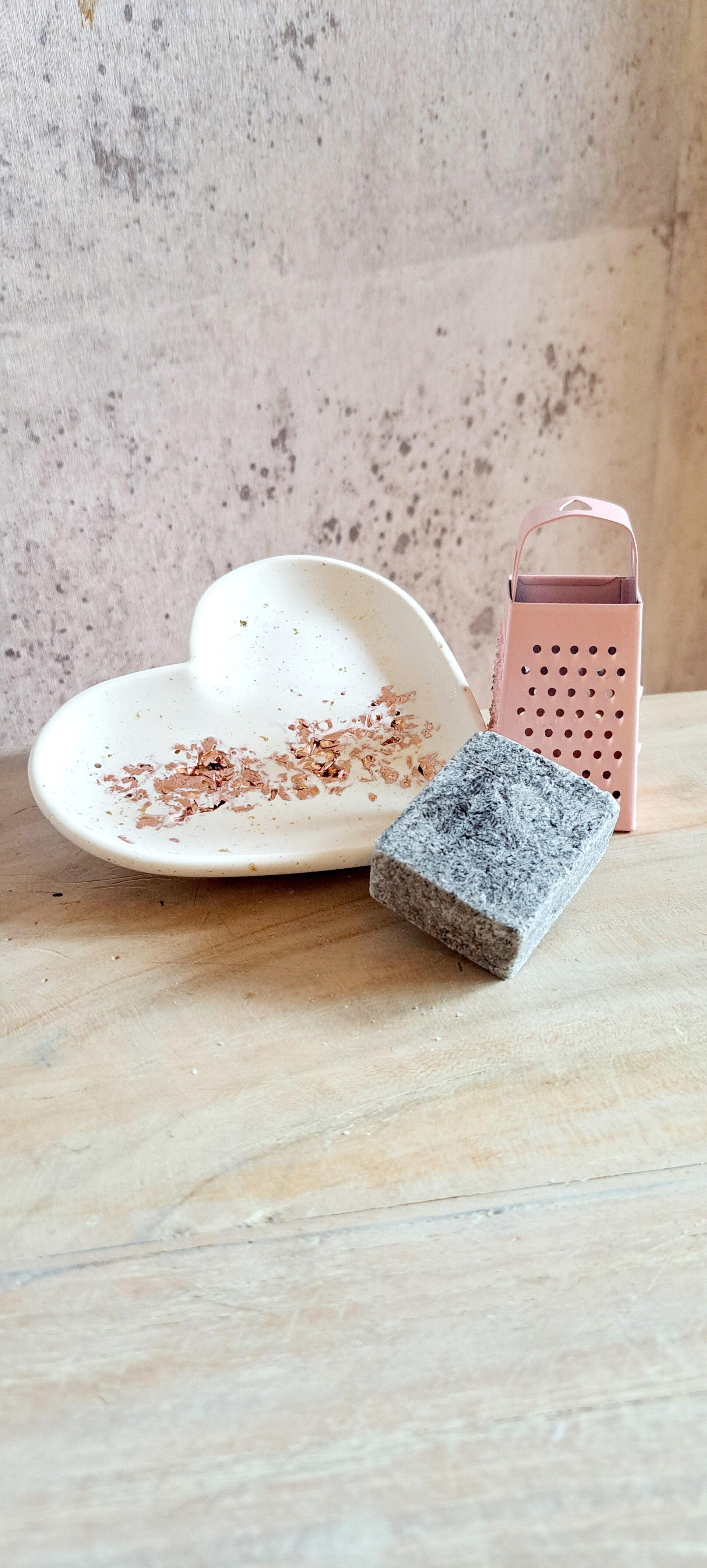 Acrylschaal met amber set hartje wit - € 9,50