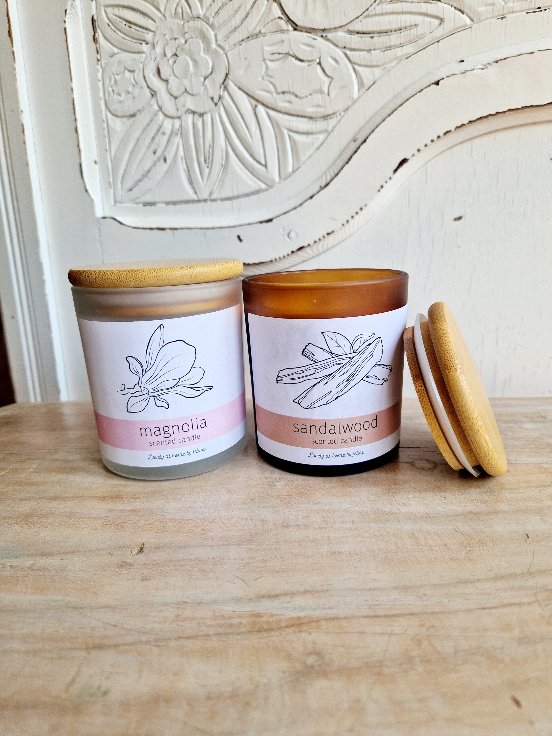 We hebben nu ook hele toffe geurkaarsen in een mooie glazen pot met bamboe deksel. De geur Magnolia en de geur Sandelwood.